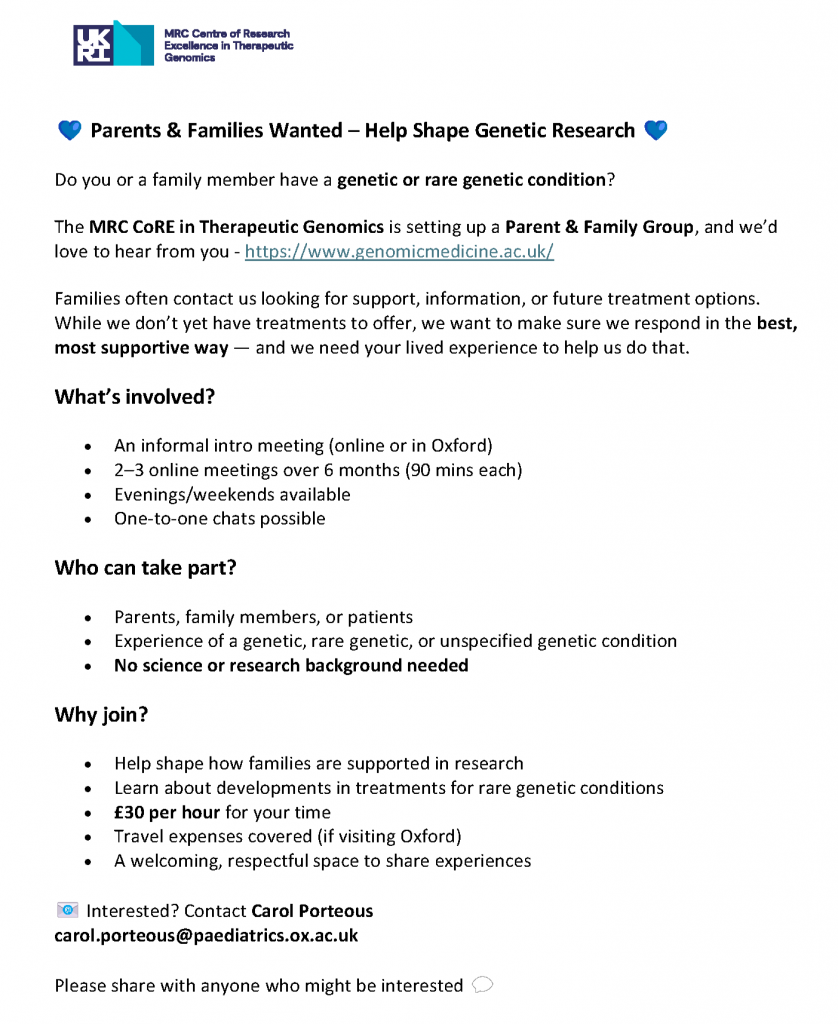 Learn more and get involved by contacting carol.porteous@paediatrics.ox.ac.uk